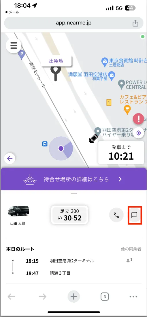 ②クリックすると、ドライバーチャットページへと移動しますので、こちらのページからドライバーとチャットが可能になります