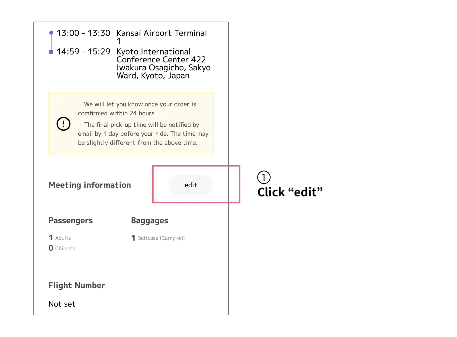 ① Click “edit” at the “Meeting Information” section.