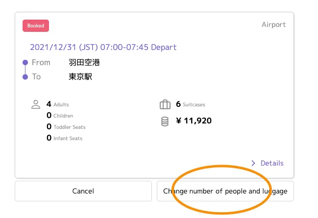 In addition, when changing the number of people or luggage, “NearMe fee” will be recalculated based on the conditions at the time of the change. The discount amount that was applied before changing the number of people or luggage may change.