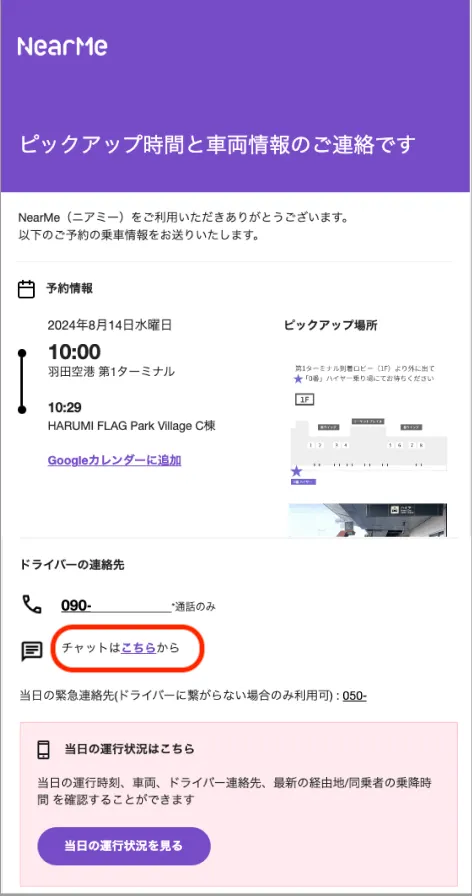 【車両確定メールが届いている場合】ドライバーチャットを行うための手順