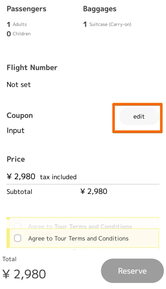 You can proceed from the reservation form and reflect the coupon on the final reservation confirmation screen.