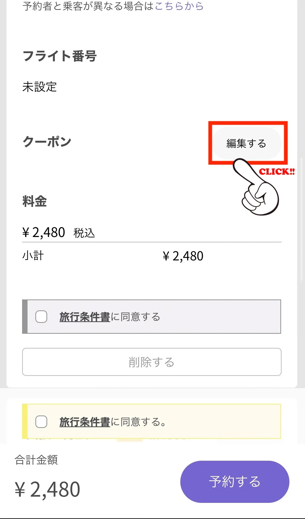 会員登録なしでのご予約(ゲスト予約)の場合には、ニアミークーポンは利用できません。