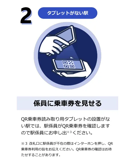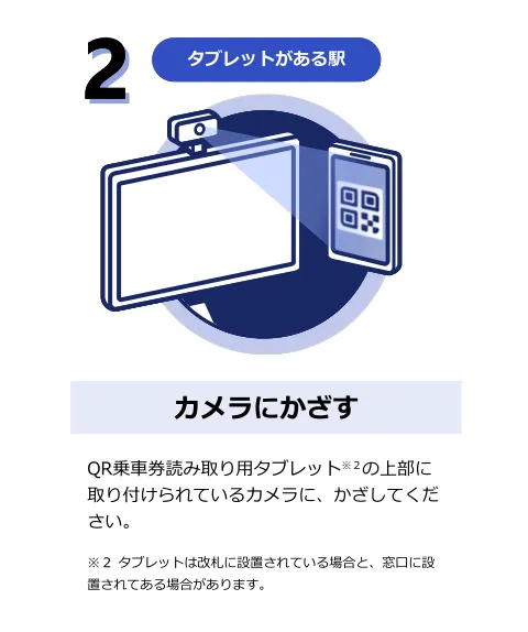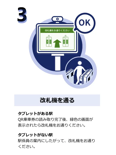 ・「新宿」「四谷三丁目 」「淡路町」「御茶ノ水 」「池袋(一部のみ)」でご利用の際は、この画面をQR乗車券対応改札機の近くのタブレットのカメラかざしてください