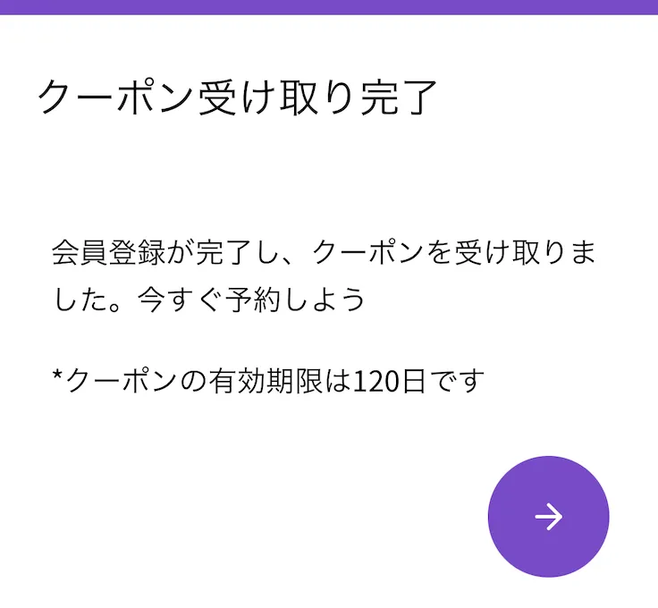②会員登録が完了すると、友達招待クーポンの受け取りが完了となります